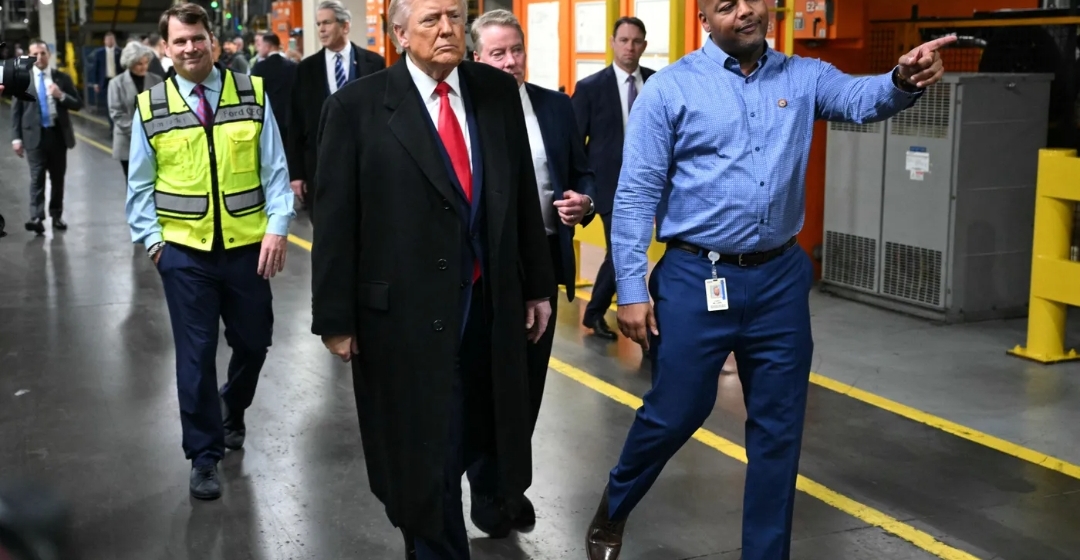 في مشهد صادم، وثق مقطع فيديو الرئيس الأمريكي دونالد ترامب وهو يرد على رجل غاضب، بتوجيه إشارة بذيئة للرجل، بالإضافة إلى الرد عليه بالشتائم. وذلك خلال زيارته لمصنع سيارات في ميشيغان.