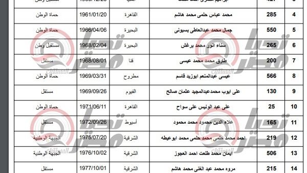 15. مصطفى محمد يوسف محمد إسماعيل – الوادي الجديد – الجبهة الوطنية