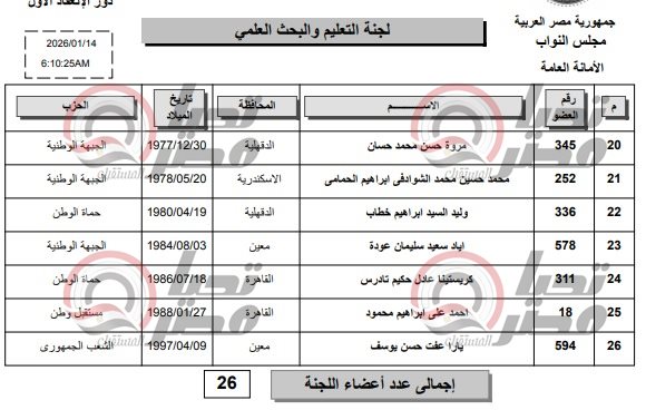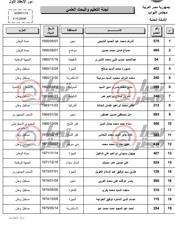 تحيا مصر ينشر تشكيل لجنة التعليم والبحث العلمي بمجلس النواب 2026
