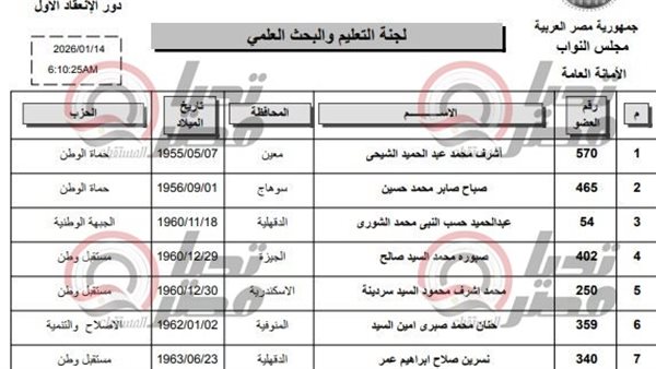 على رأسهم أشرف الشيحي.. تحيا مصر ينشر تشكيل لجنة التعليم والبحث العلمي بمجلس النواب 2026