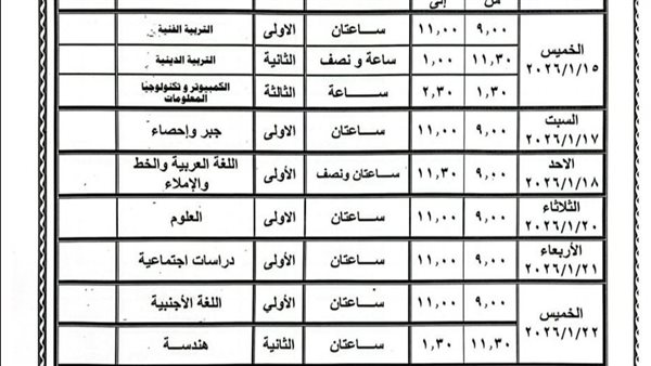 محافظ الشرقية يعتمد جدول إمتحانات الفصل الدراسي الأول للمرحلة الإعدادية للعام الدراسي ٢٠٢٥ ـ ٢٠٢٦