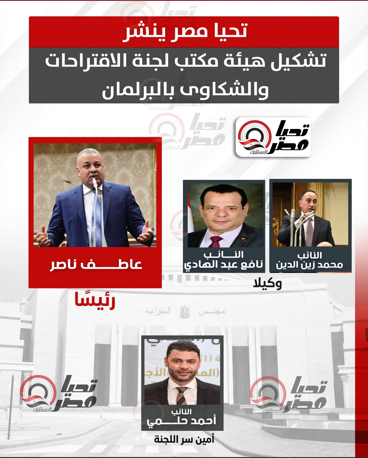 برئاسة النائب عاطف ناصر.. تحيا مصر ينشر تشكيل مكتب لجنة الاقتراحات والشكاوي بمجلس النواب