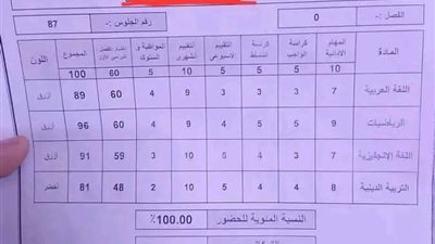 نتيجة الصف الثالث الابتدائي 2026 للفصل الدراسي الأول بالألوان