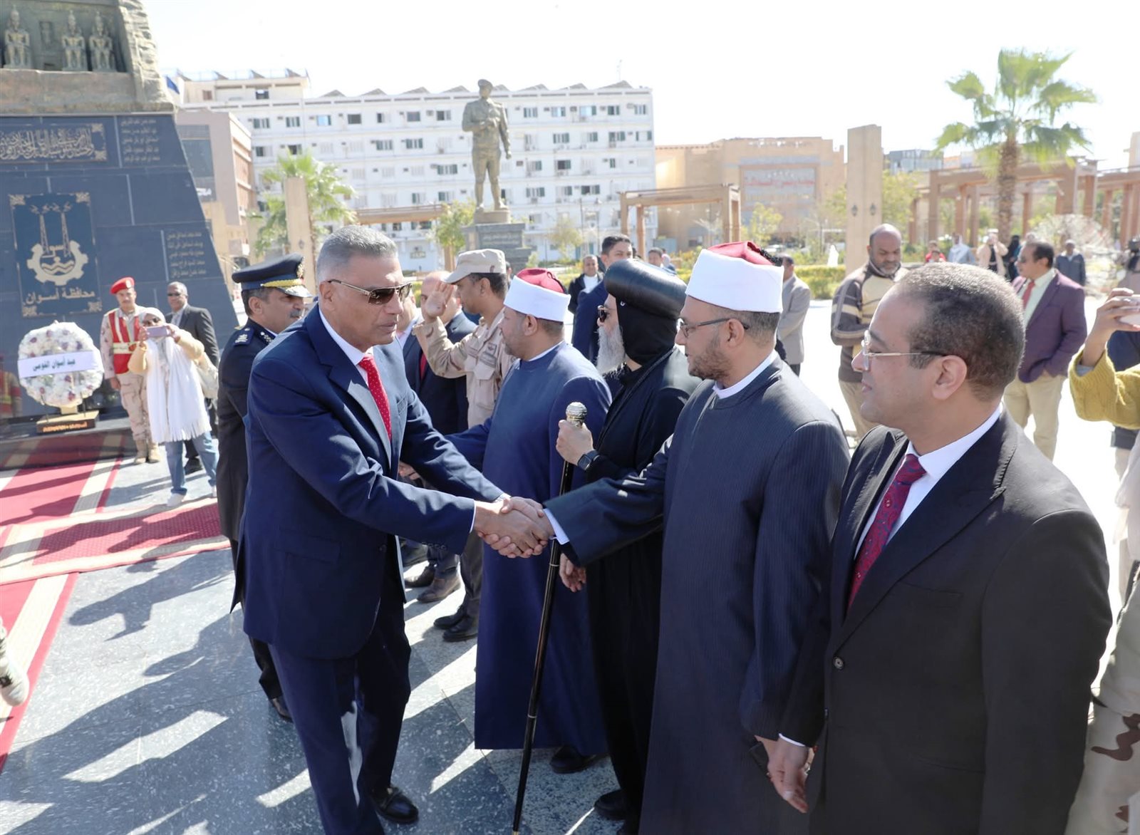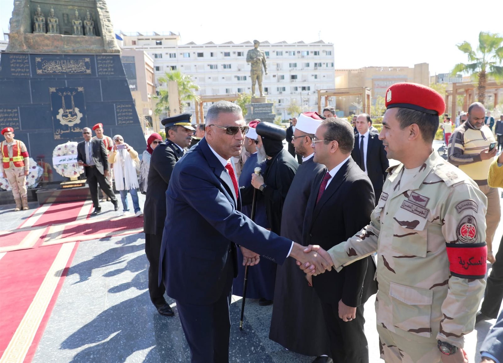 ضمن سلسلة فعاليات عروس المشاتى بعيدها القومى الـ 55 قام اللواء دكتور إسماعيل كمال محافظ أسوان بوضع إكليل الزهور على النصب التذكارى للشهداء بحديقة بلازا درة النيل وسط أجواء إحتفالية للموسيقى العسكرية.