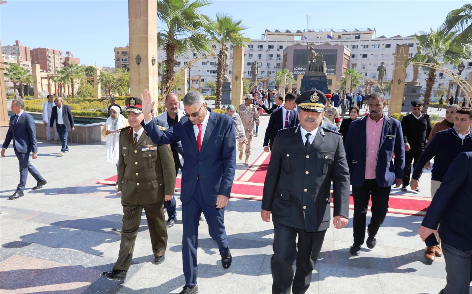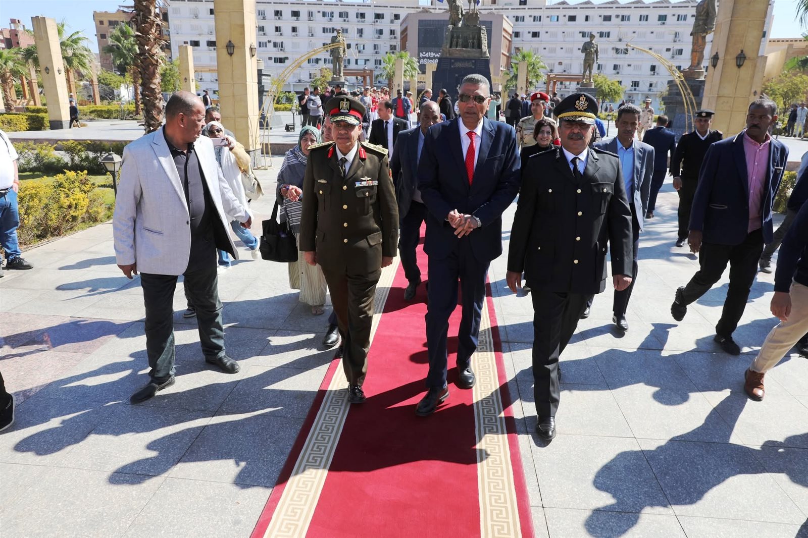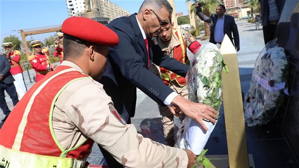 محافظ أسوان يضع إكليلا الزهور على النصب التذكارى للشهداء بمناسبة العيد القومي ال55 للمحافظة