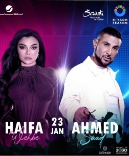 يستعد كل من الفنان أحمد سعد، هيفاء وهبي، لإحياء حفل جماهيري ضخم، يوم الجمعة 23 يناير الجاري، ضمن فعاليات موسم الرياض.