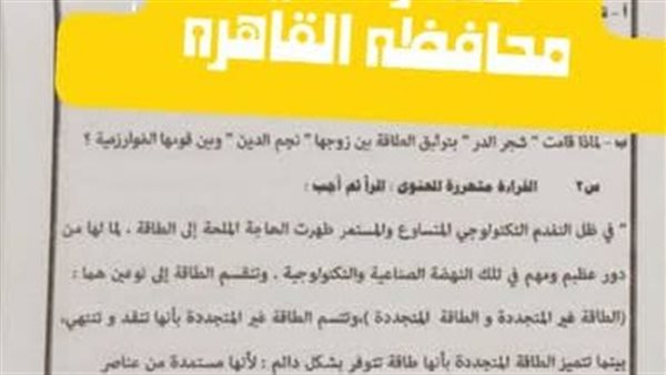 تداول امتحان اللغة العربية للشهادة الإعدادية بمحافظة القاهرة