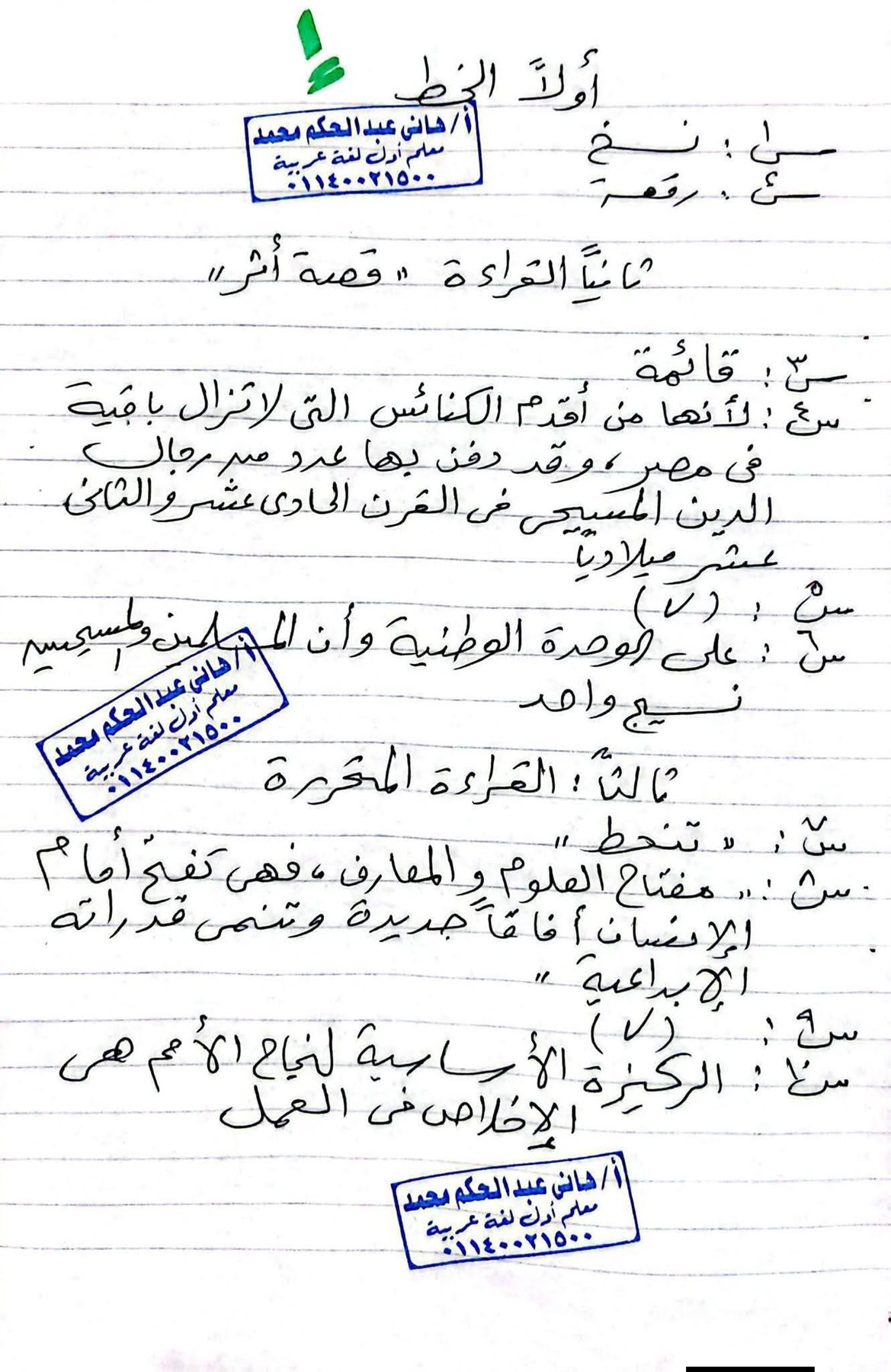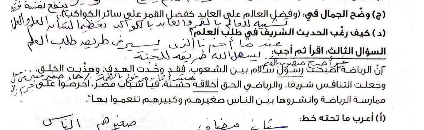 وجاءت إجابات امتحان اللغة العربية للشهادة الإعدادية بمحافظة قنا 2026 المتداولة لإحدى معلم اللغة العربية كالآتي: