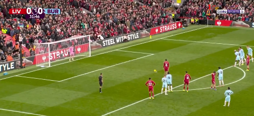 وفي الدقيقة 16، شهدت المباراة أول تهديد حقيقي من بيرنلي، عندما سدد أحد لاعبيه كرة قوية مرت فوق مرمى أليسون بيكر، في محاولة لتسجيل هدف مفاجئ.
