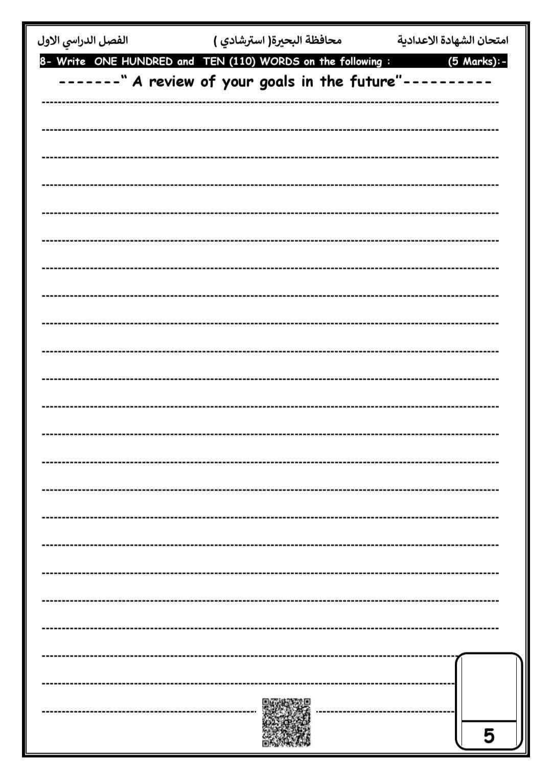 نموذج امتحان اللغة الإنجليزية للصف الثالث الإعدادي 2026 الاسترشادي