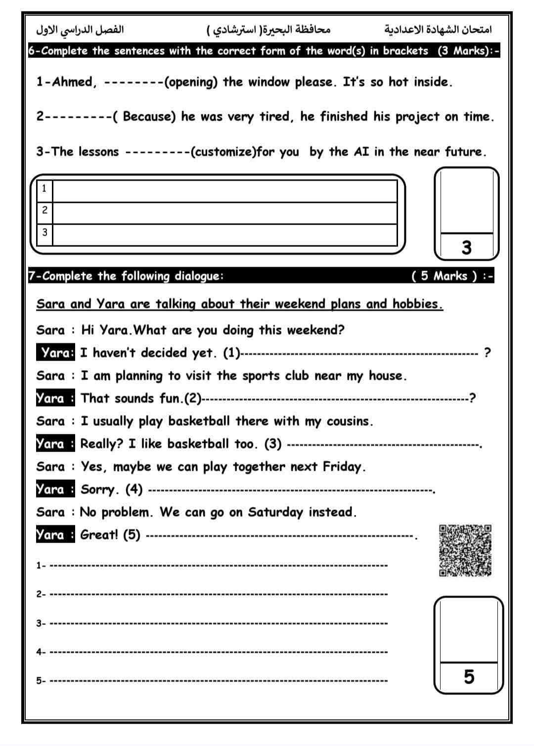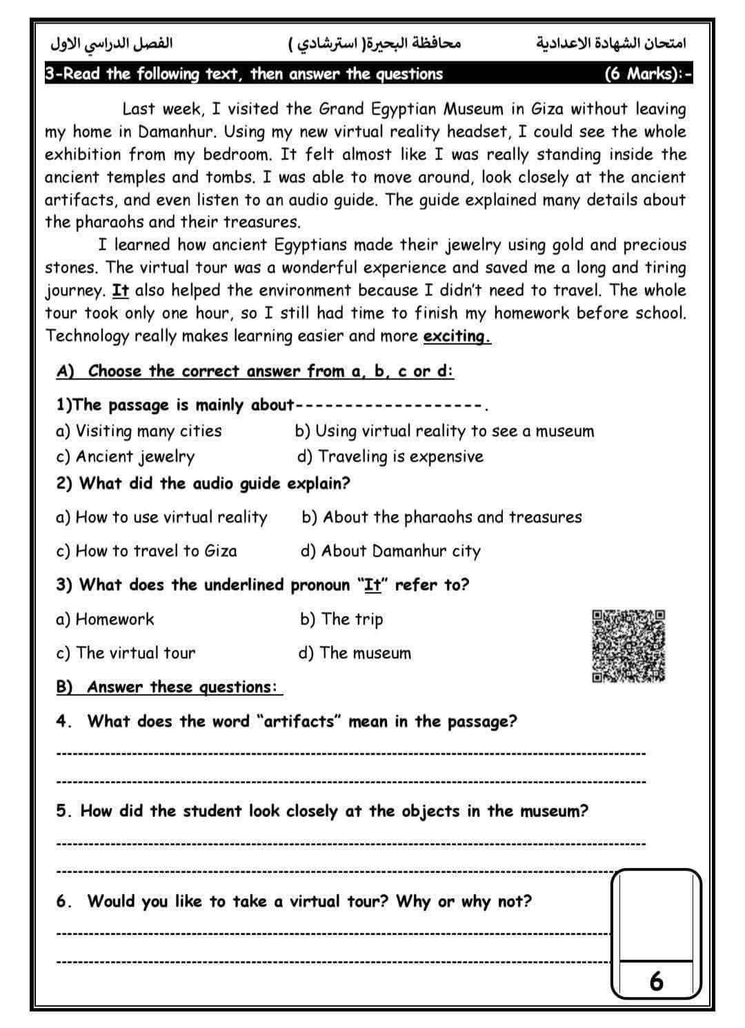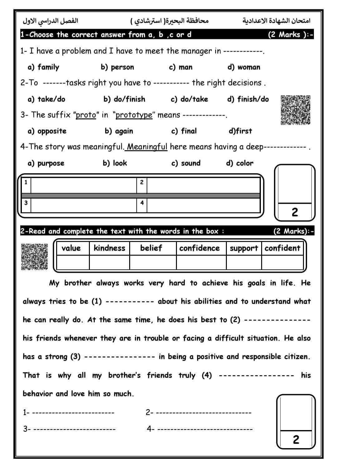وياتى نموذج امتحان اللغة الإنجليزية للصف الثالث الإعدادي 2026 الاسترشادي فى الصور التالية: