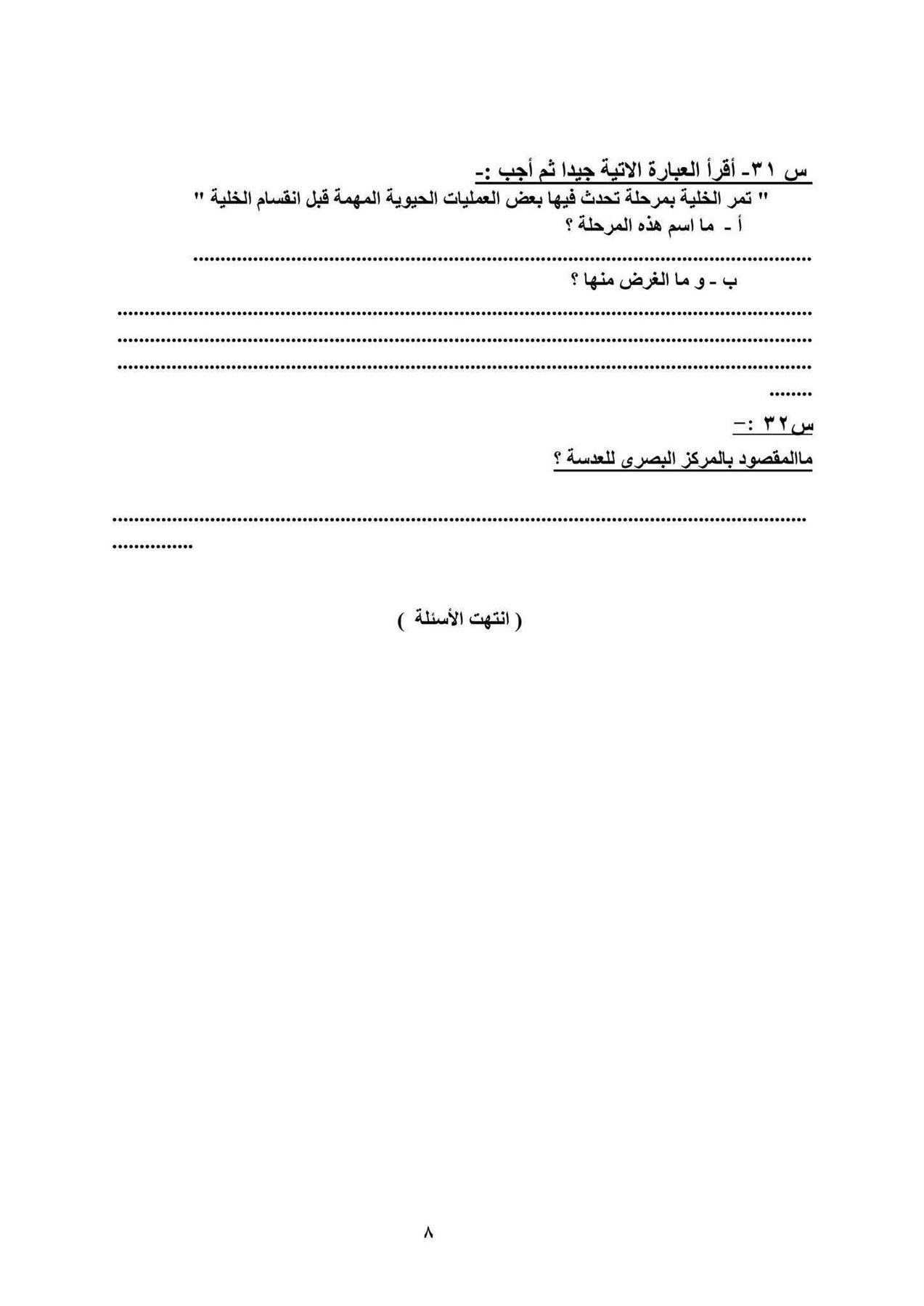 التعرف على شكل امتحان العلوم النهائي.