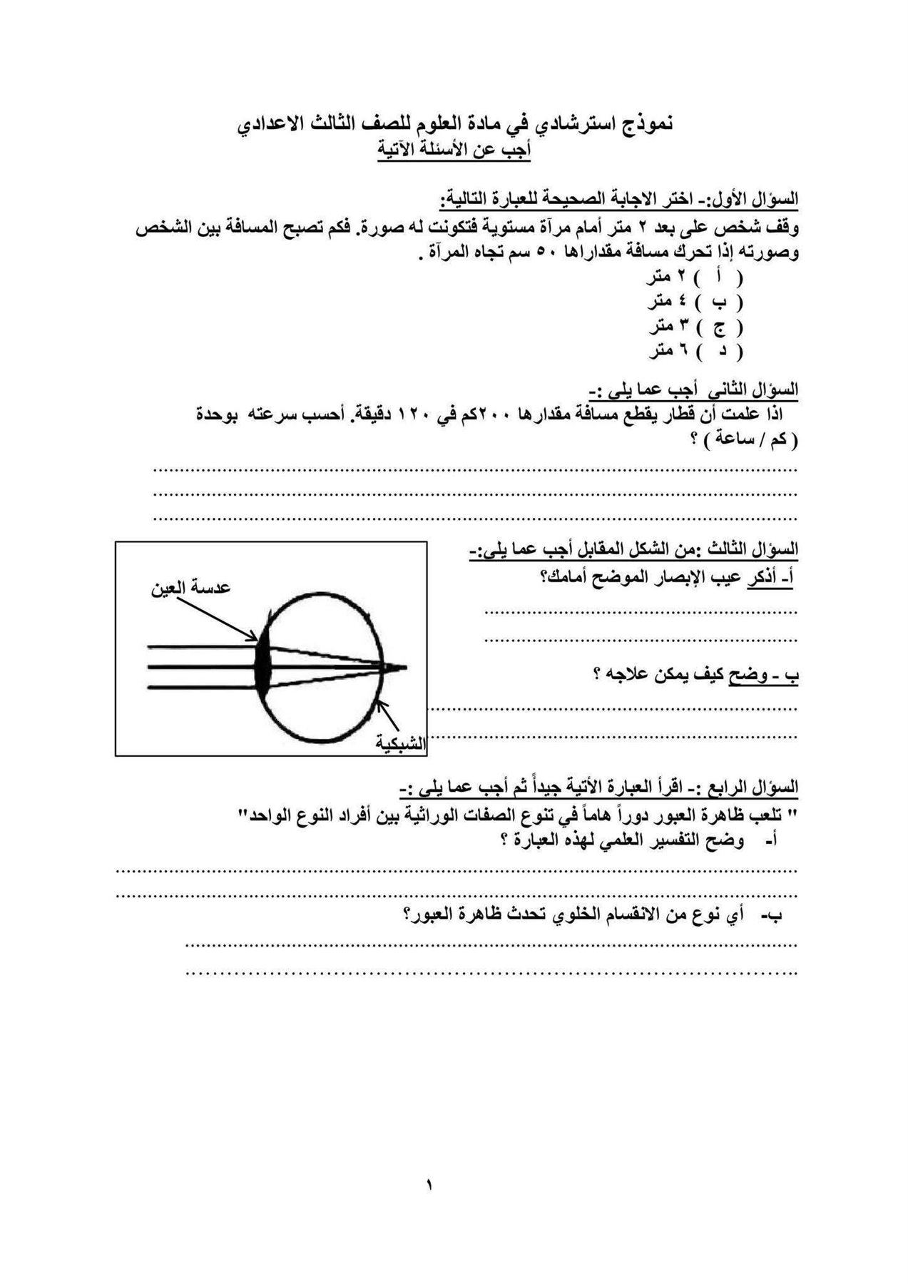 هذا النموذج الاسترشادي للتدريب فقط، ويهدف إلى مساعدة الطلاب على الاستعداد الجيد للامتحان، ولا يعني تطابقه الكامل مع الامتحان الرسمي، لكنه يعكس الشكل العام وطبيعة الأسئلة المتوقعة.