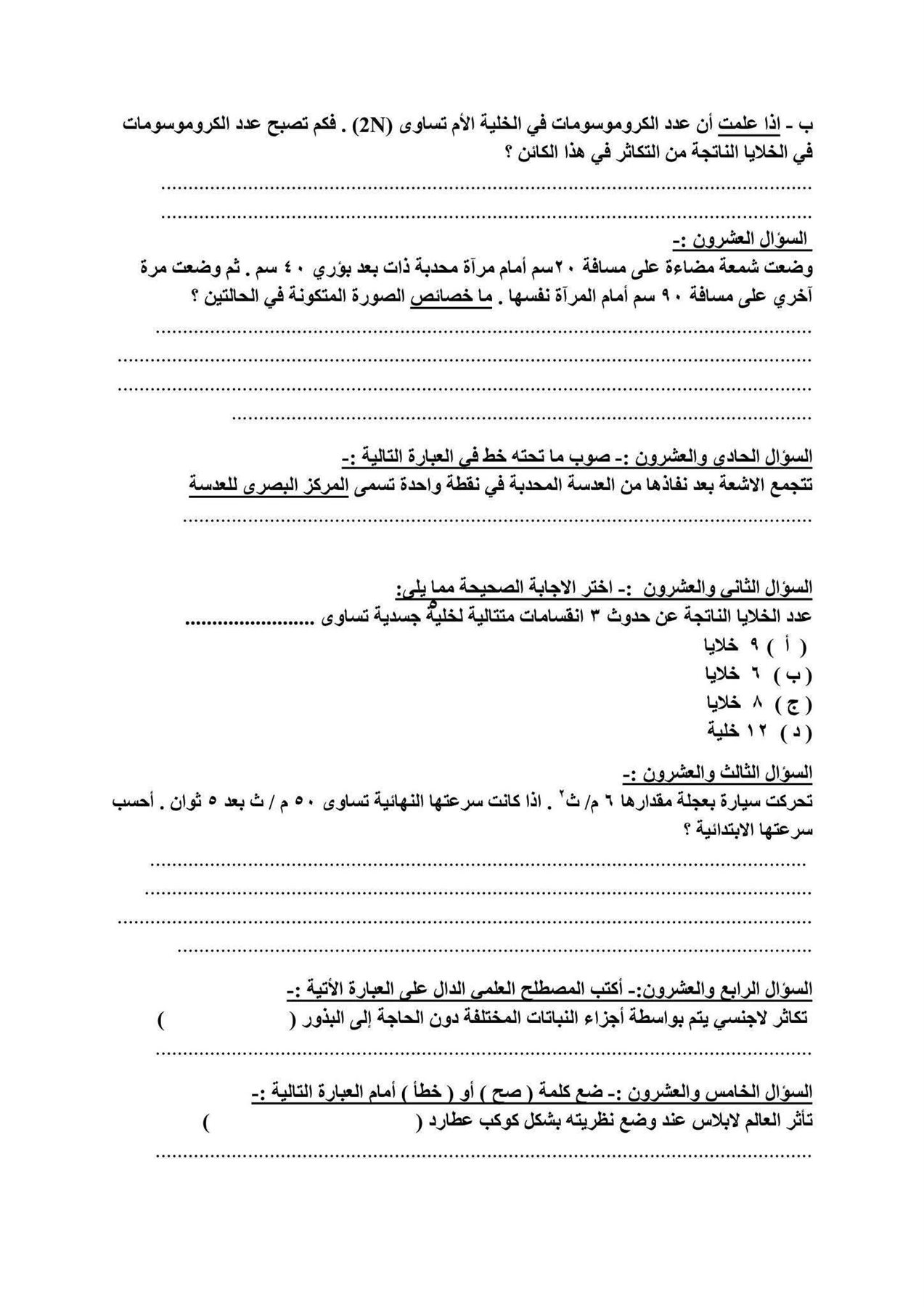امتحان العلوم للشهادة الإعدادية الترم الأول