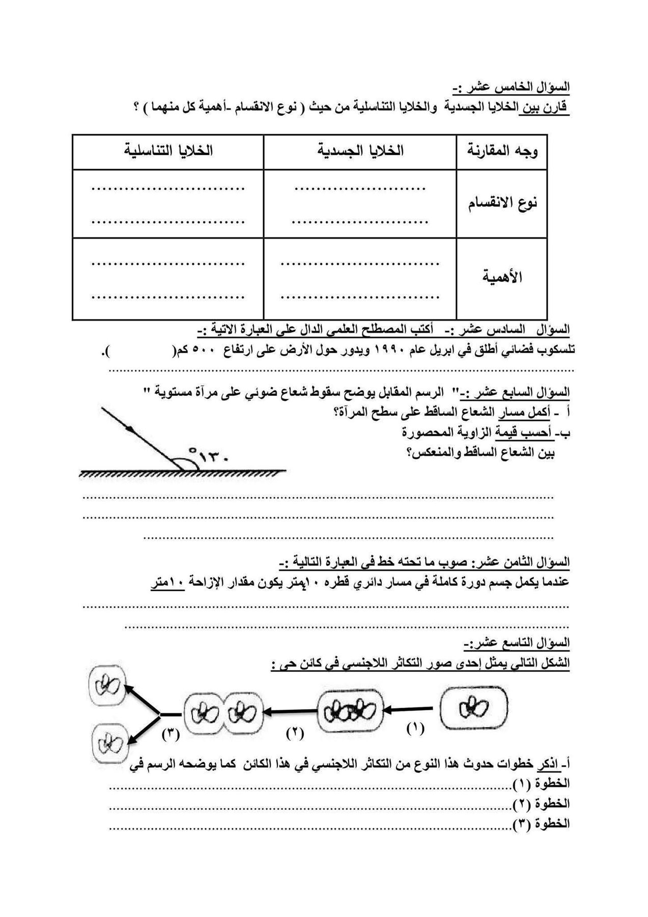 مواصفات امتحان العلوم للشهادة الإعدادية
