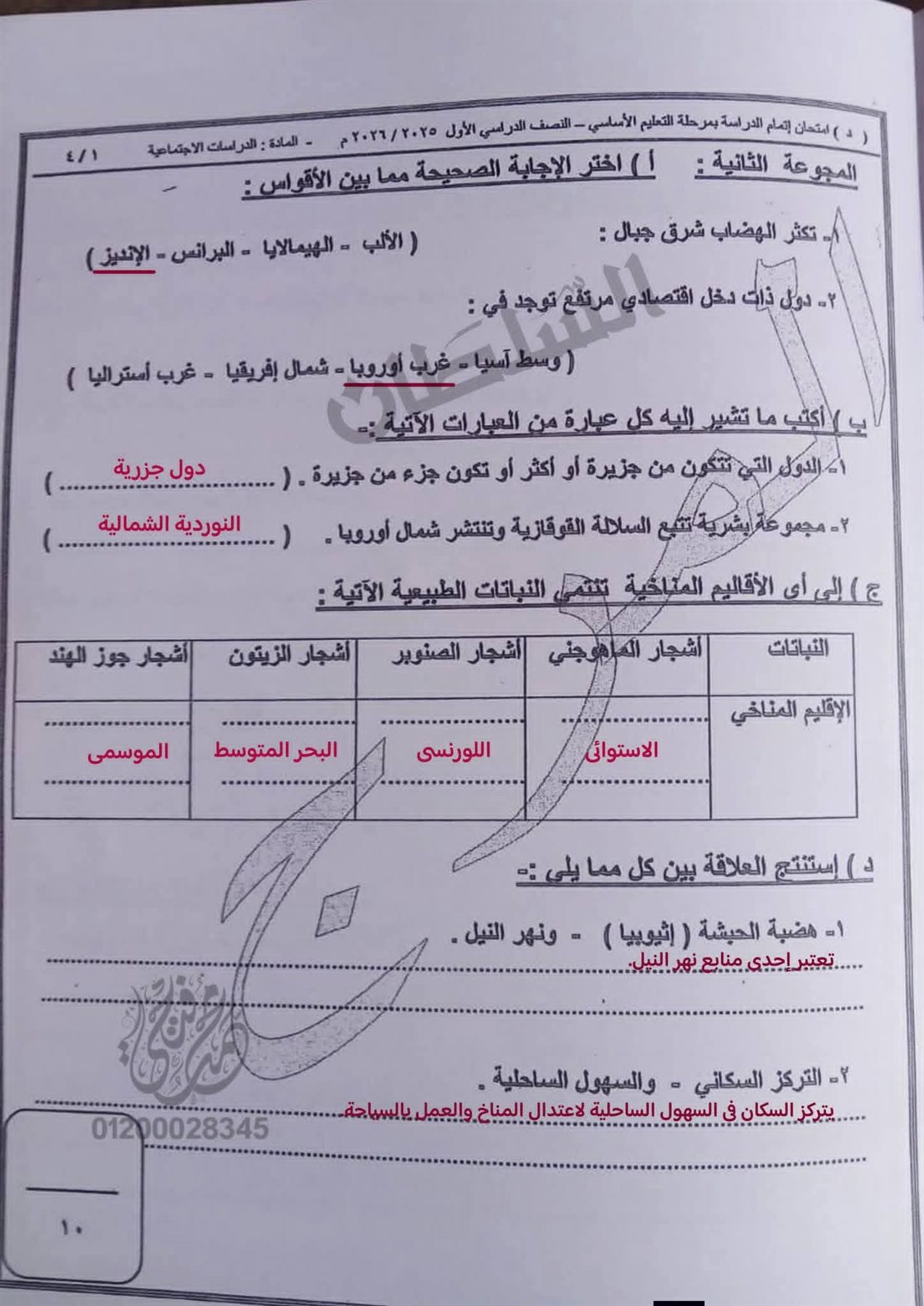 إجابات امتحان الدراسات الاجتماعية للشهادة الإعدادية 2026