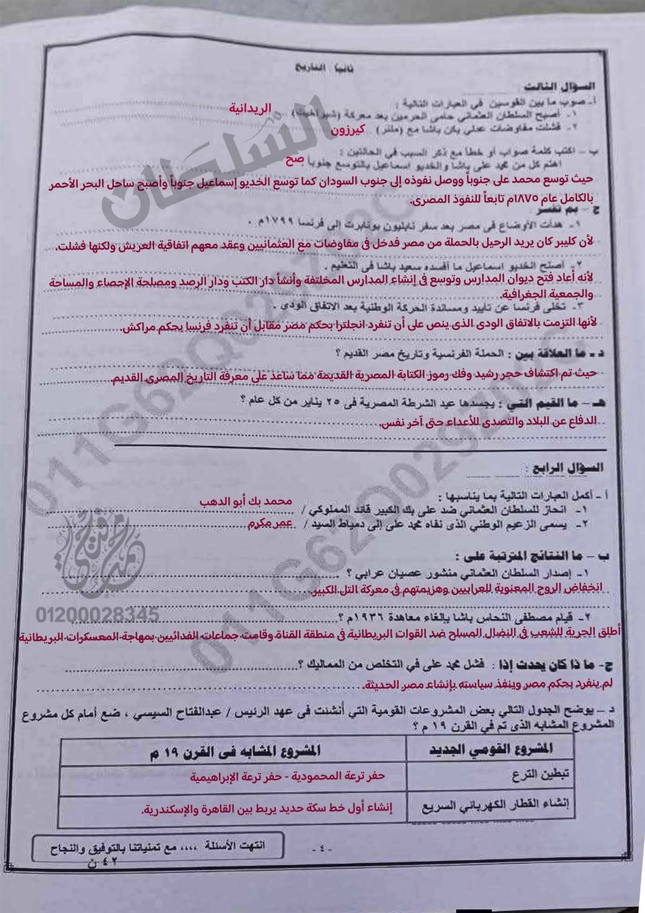 - إجابات الدراسات الاجتماعية الشهادة الإعدادية المنوفية