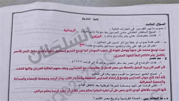 - امتحان الدراسات الاجتماعية تالتة إعدادي المنوفية