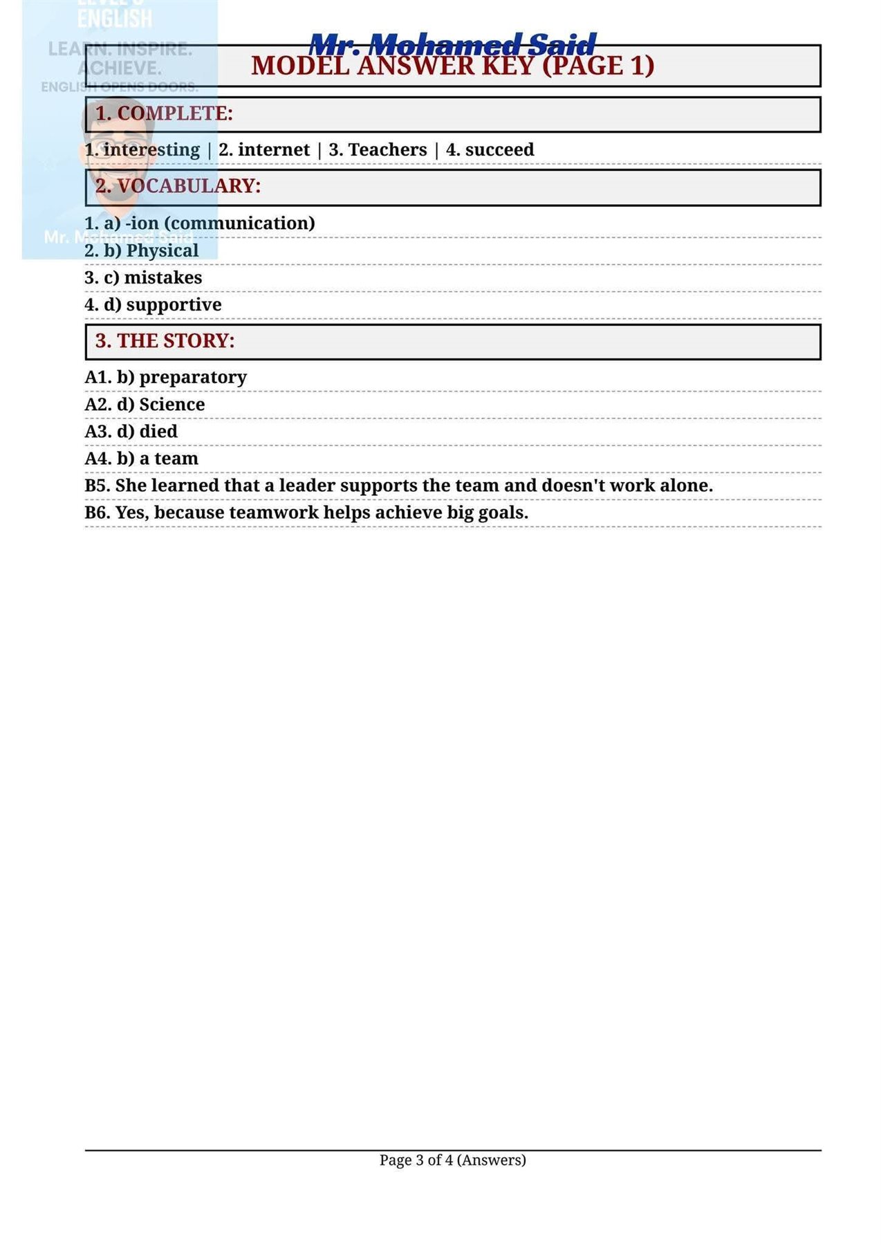 ويتيح الاطلاع على الحلول للطلاب فرصة مراجعة أخطائهم قبل ظهور نتيجة الشهادة الإعدادية 2026، والتأكد من أنهم في المسار الصحيح لتحقيق النجاح والتفوق.