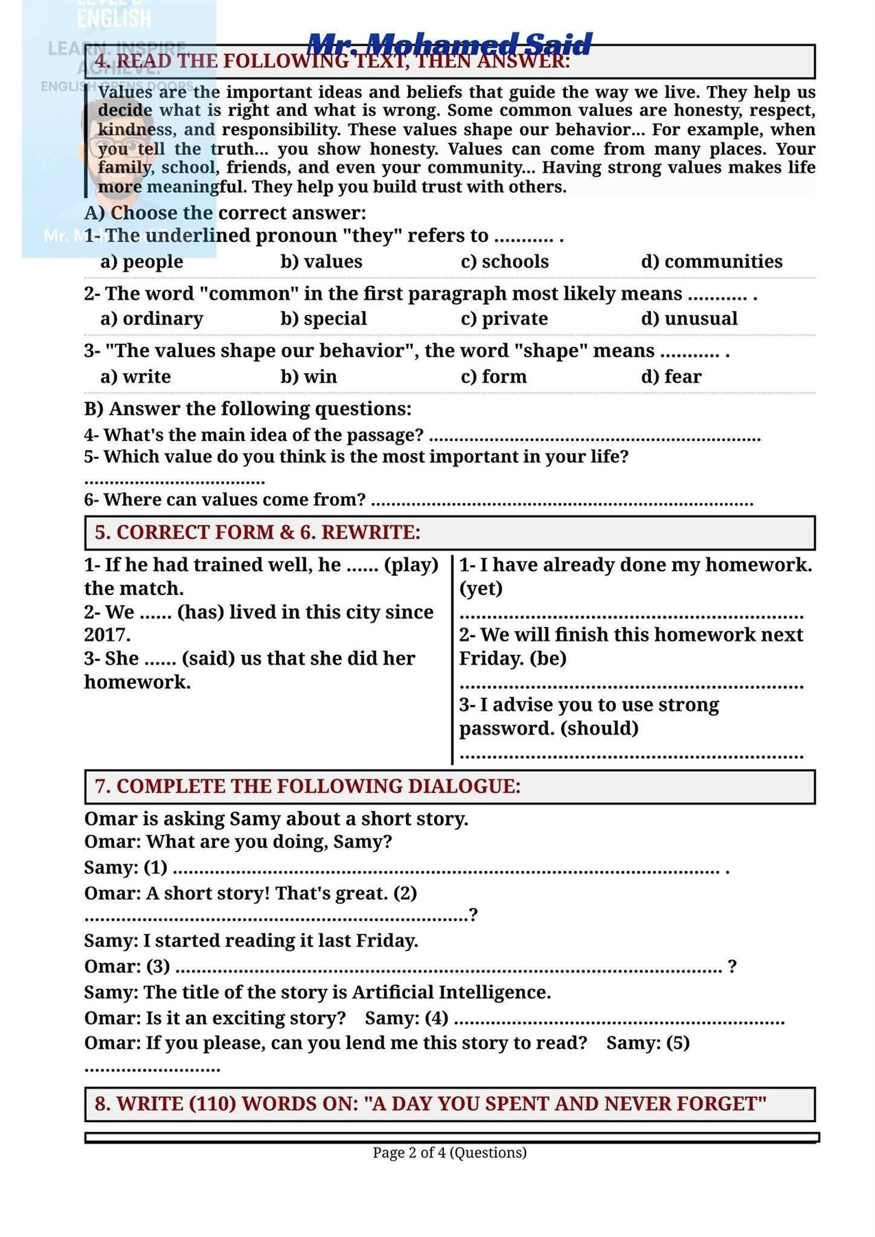 حل امتحان اللغة الإنجليزية للشهادة الإعدادية 2026 بمحافظة الجيزة.. راجع حلك صح ولا لا