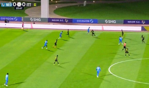 شهدت الدقائق الأولى من المباراة حذرًا تكتيكيًا من الجانبين، حيث سعى الهلال لفرض أسلوبه المعتاد القائم على الاستحواذ وبناء الهجمات المنظمة من الخلف، بينما اعتمد نيوم على التكتل الدفاعي واللعب على الهجمات المرتدة السريعة، هذا التوازن في الأداء زاد من سخونة لقاء نيوم ضد الهلال وجعل الإيقاع مرتفعًا منذ البداية.