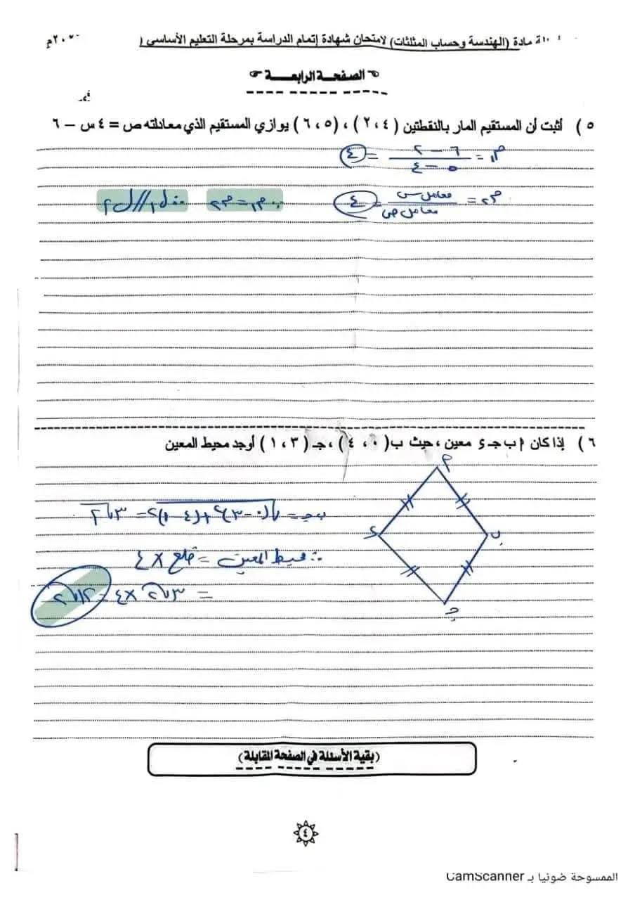 - إجابات امتحان الهندسة للصف الثالث الإعدادي
