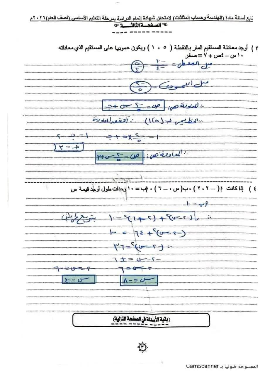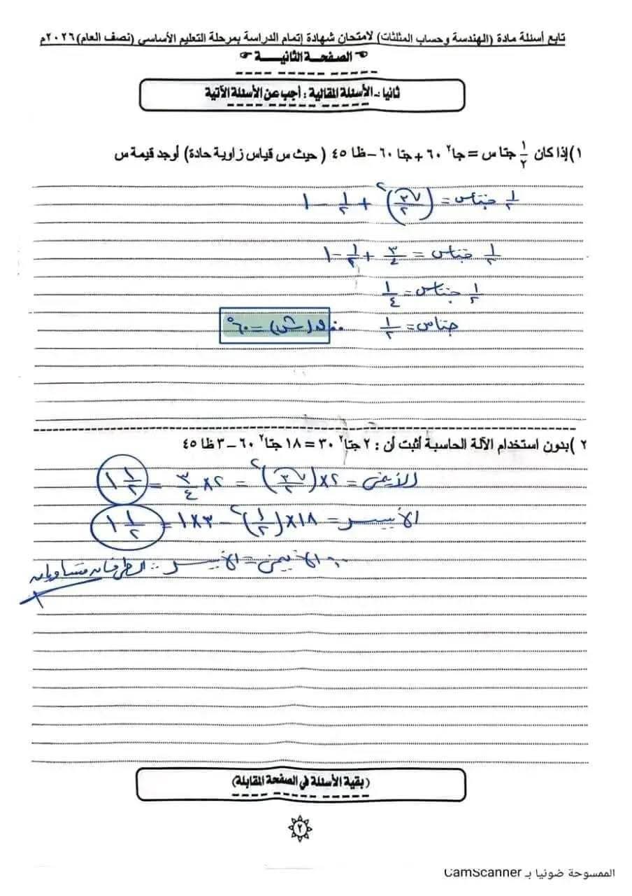 - إجابات الشهادة الإعدادية 2026