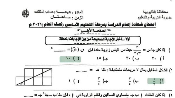 مستوى امتحان الهندسة للشهادة الإعدادية بالقليوبية