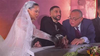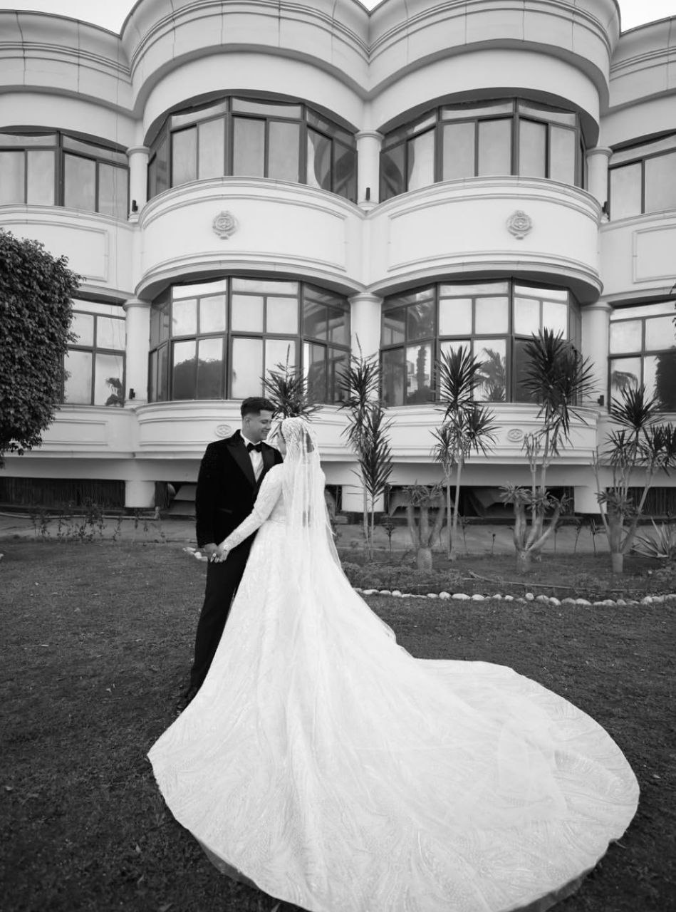 أخفى وجهها.. الصور الأولى من حفل زفاف مغني المهرجانات أمين خطاب على فتاة محجبة