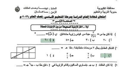الإجابات المنشورة تهدف إلى المراجعة فقط، ويظل التصحيح النهائي معتمدًا على نموذج الإجابة الرسمي الذي تعلنه مديرية التربية والتعليم.