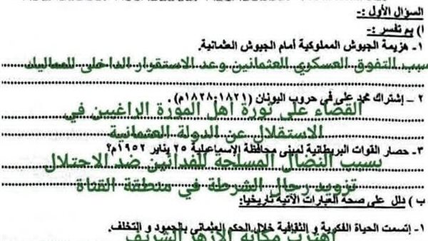 - حل امتحان الدراسات الاجتماعية إعدادية