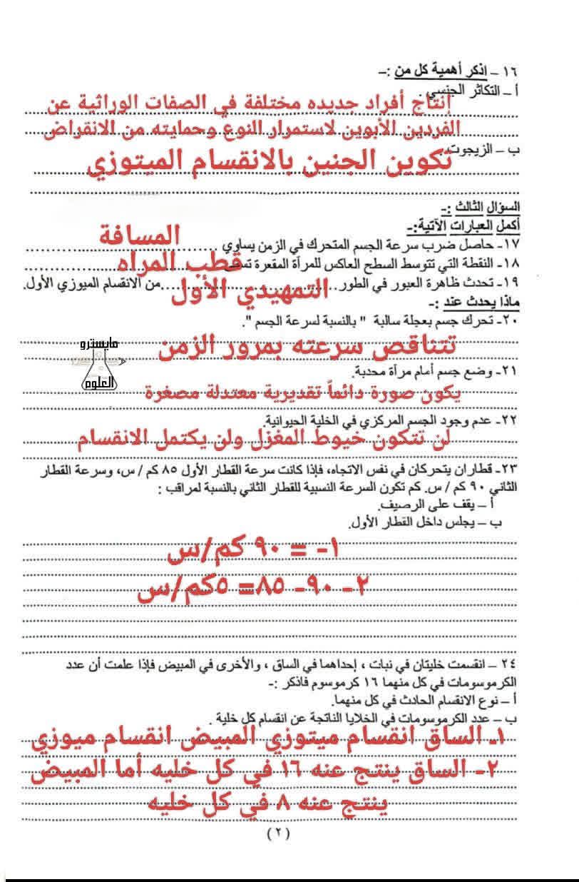 تساعد مراجعة إجابات امتحان العلوم الشهادة الإعدادية محافظة قنا الطلاب على: