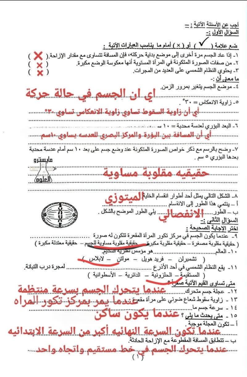 أهمية مراجعة إجابات امتحان العلوم