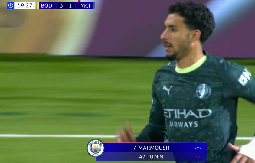 ومع تأخر مانشستر سيتي بثلاثة أهداف مقابل هدف واحد، أصبح الفريق مطالبًا بالتركيز على الهجمات المنظمة والاستفادة من سرعة ومرونة مرموش في تحريك الكرة وخلق فرص أمام مرمى بودو جليمت.