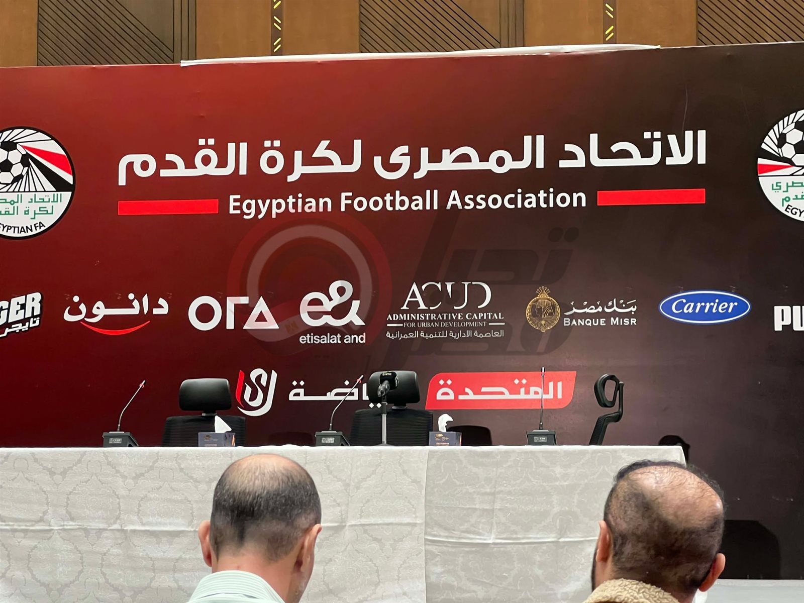 تحيا مصر يرصد تجهيزات المؤتمر الصحفي لـ حسام حسن مدرب المنتخب بحضور وزير الرياضة وأبو ريدة