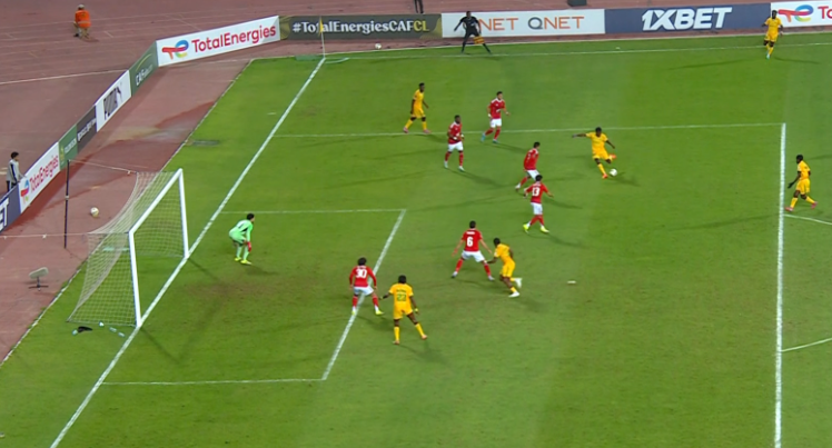 وبحلول الدقيقة الرابعة عشر، أجرى يانج أفريكانز أول تهديد حقيقي على مرمى الأهلي بعد تسديدة قوية من أوكيلي، لكن الحارس مصطفى شوبير كان متواجدًا في المكان المناسب لتصدي الكرة بسهولة. هذه المحاولة كانت بمثابة تنبيه للاعبي الأهلي بضرورة زيادة الفاعلية الهجومية وتنويع أساليب الهجوم لاختراق الدفاعات المحكمة للفريق التنزاني.