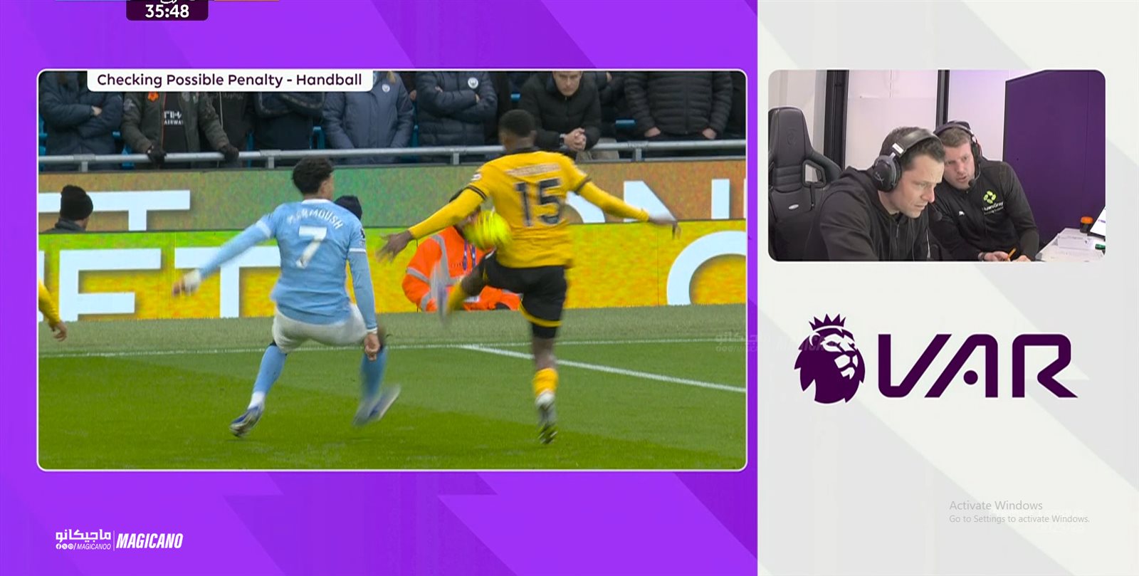 وجاءت الواقعة في الدقيقة 35 من عمر اللقاء، حينما سقط عمر مرموش داخل منطقة الجزاء بعد احتكاك قوي مع أحد مدافعي وولفرهامبتون، ليطالب لاعبو مانشستر سيتي بركلة جزاء فورية، قبل أن يتدخل حكم الفيديو المساعد ويستدعي الحكم الرئيسي لمراجعة اللقطة.
