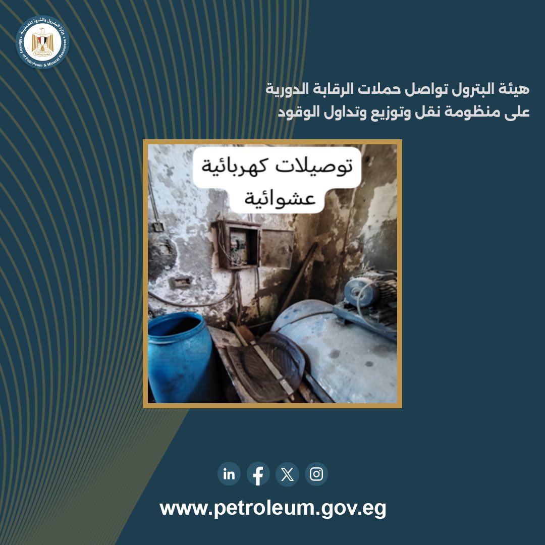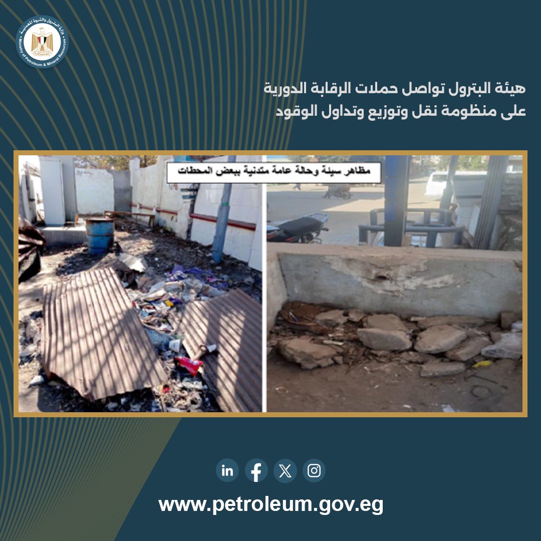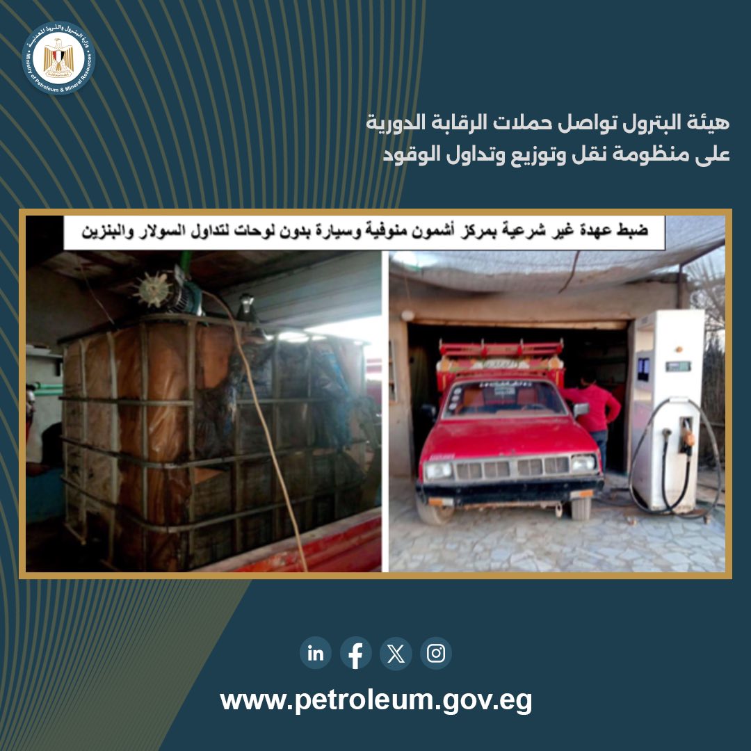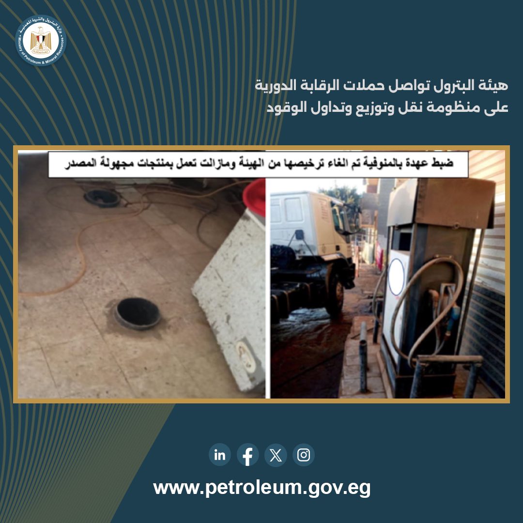 تم المرور والمراجعة على (23) محطة وقود بمحافظات: البحيرة، الشرقية، المنوفية، الإسكندرية، دمياط.