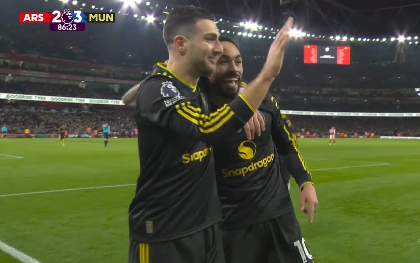 لكن الإثارة لم تتوقف عند هذا الحد، ففي الدقيقة 87، خطف ماتيوس كونيا الأضواء بتسديدة صاروخية رائعة من خارج منطقة الجزاء، سكنت الشباك، معلنًا الهدف الثالث لمانشستر يونايتد، ليحسم المواجهة بشكل درامي في واحدة من أقوى مباريات آرسنال ضد مان يونايتد في السنوات الأخيرة.