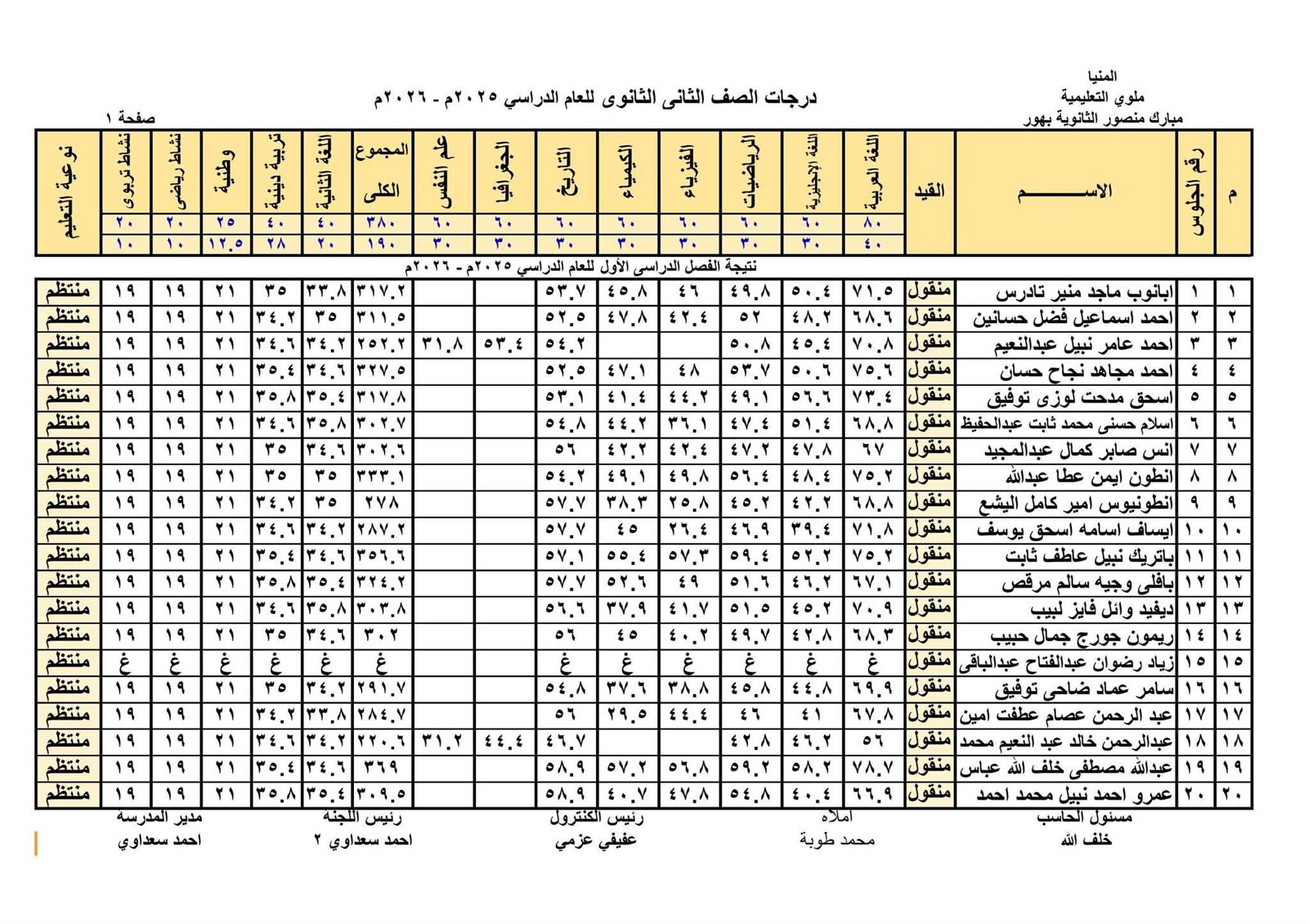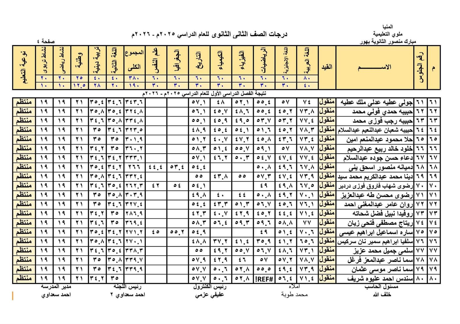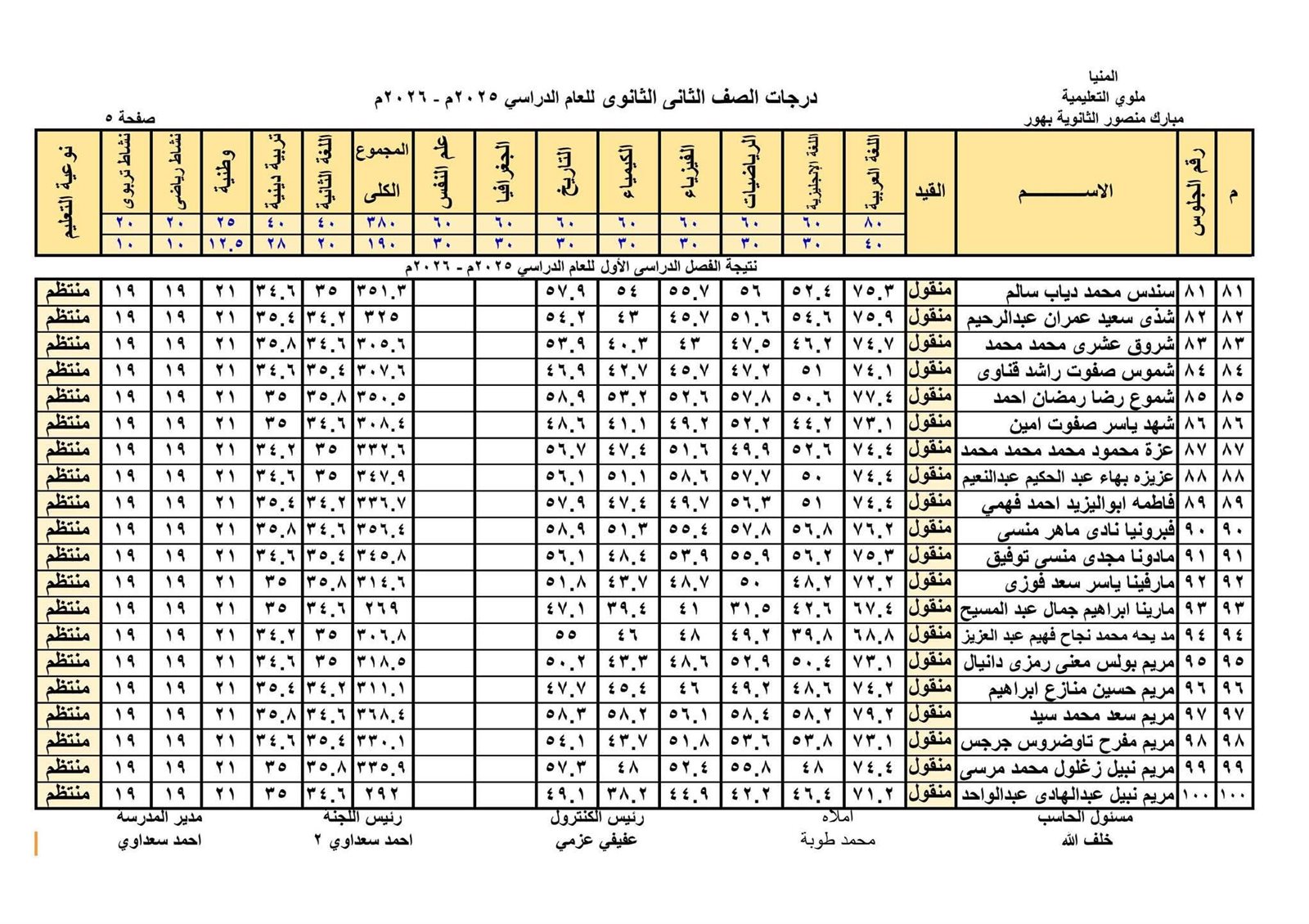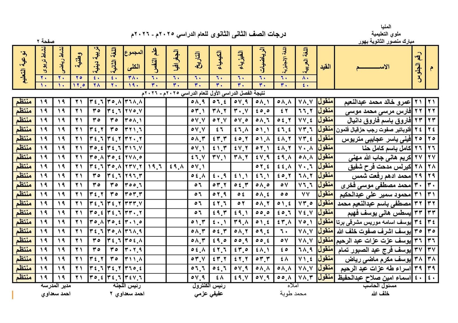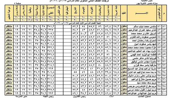- نتيجة الصف الثاني الثانوي الترم الأول