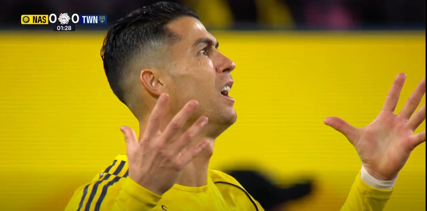 وفي الدقيقة الثانية من عمر المباراة، أرسل أحد لاعبي النصر عرضية طويلة خلف دفاع التعاون، نجح كريستيانو رونالدو في اللحاق بها، وسدد الكرة على الطائر ببراعة، إلا أن العارضة وقفت حائلًا أمام تسجيل الهدف الأول، وسط حسرة واضحة من الجماهير التي كانت تنتظر احتفال النجم البرتغالي.