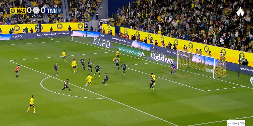 وفي الدقيقة 20، عاد رونالدو مرة أخرى ليسجل هدفًا، إلا أن الحكم ألغاه أيضًا بسبب التسلل، ليبقى التعادل السلبي قائمًا. ولم تكن الفرص الوحيدة للنصر، فقد شهدت الدقيقة 28 تسديدة قوية من رونالدو من داخل منطقة الجزاء، لكن حارس التعاون مايلسون تألق وتصدى للكرة ببراعة، محافظًا على نظافة شباكه.