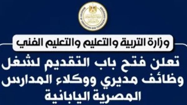 فتح باب التقديم على وظائف مديرين ووكلاء المدارس المصرية اليابانية.. الشروط والتفاصيل