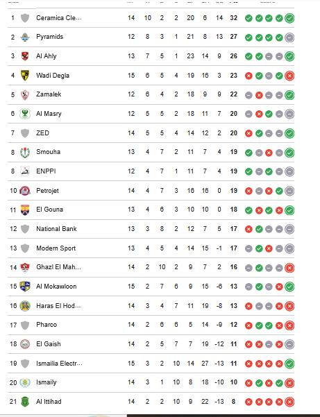 - جدول الدوري المصري بعد مباراة الأهلي ووادي دجلة