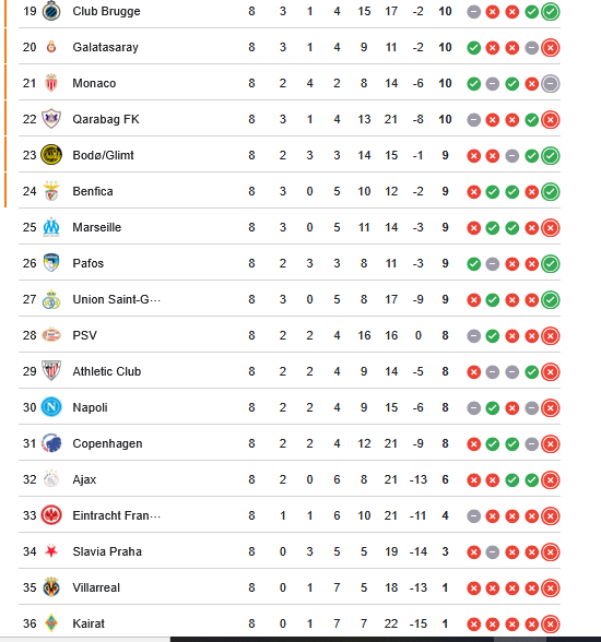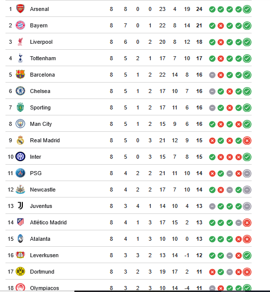 - ترتيب دوري أبطال أوروبا بعد نهاية مرحلة الدوري