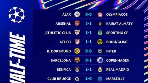 - نتائج الجولة الأخيرة دوري الأبطال كاملة