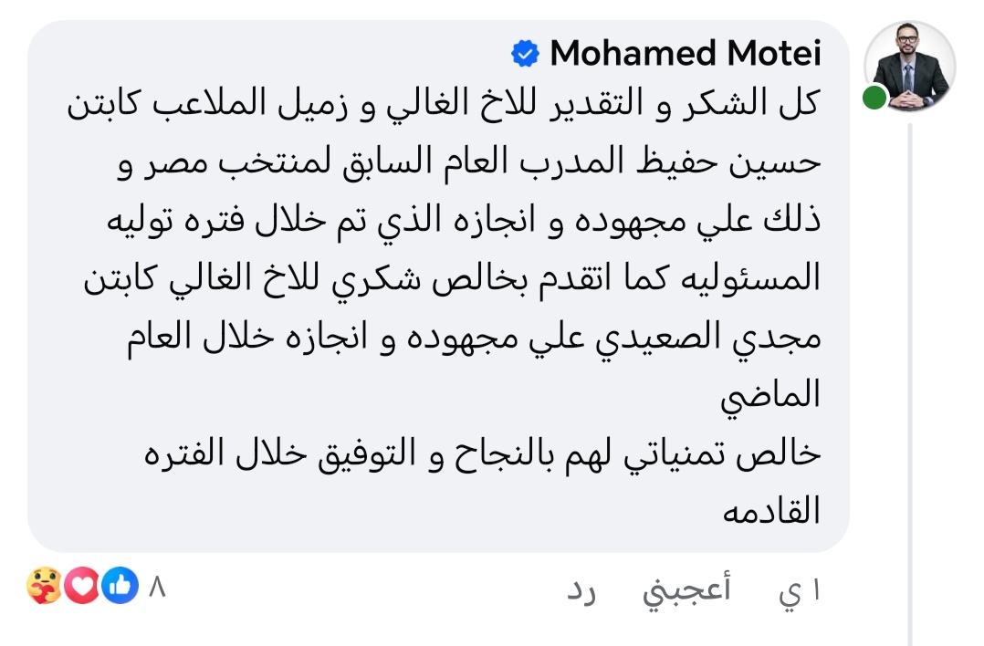 محمد مطيع يوجه رسالة تقدير عبر فيسبوك
