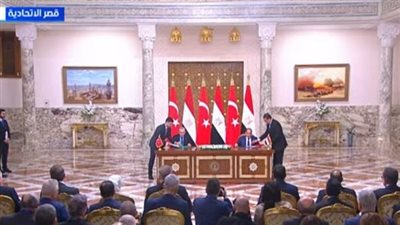 جاء ذلك عقب انتهاء جلسة مباحثات بين الرئيس عبد الفتاح السيسي والرئيس رجب طيب أردوغان، رئيس الجمهورية التركية، بقصر الاتحادية.