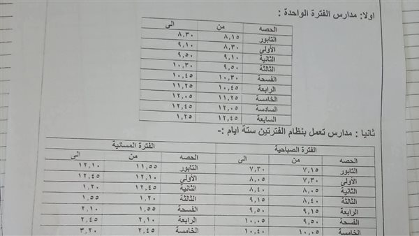 أما المدارس التي تعمل بنظام الفترتين، فقد تم تقسيم اليوم الدراسي إلى فترة صباحية وأخرى مسائية، مع الالتزام بتقليص عدد الساعات اليومية، وتنظيم الفواصل الزمنية بين الحصص، لضمان سير اليوم الدراسي بسلاسة دون الإخلال بالخطة الدراسية.