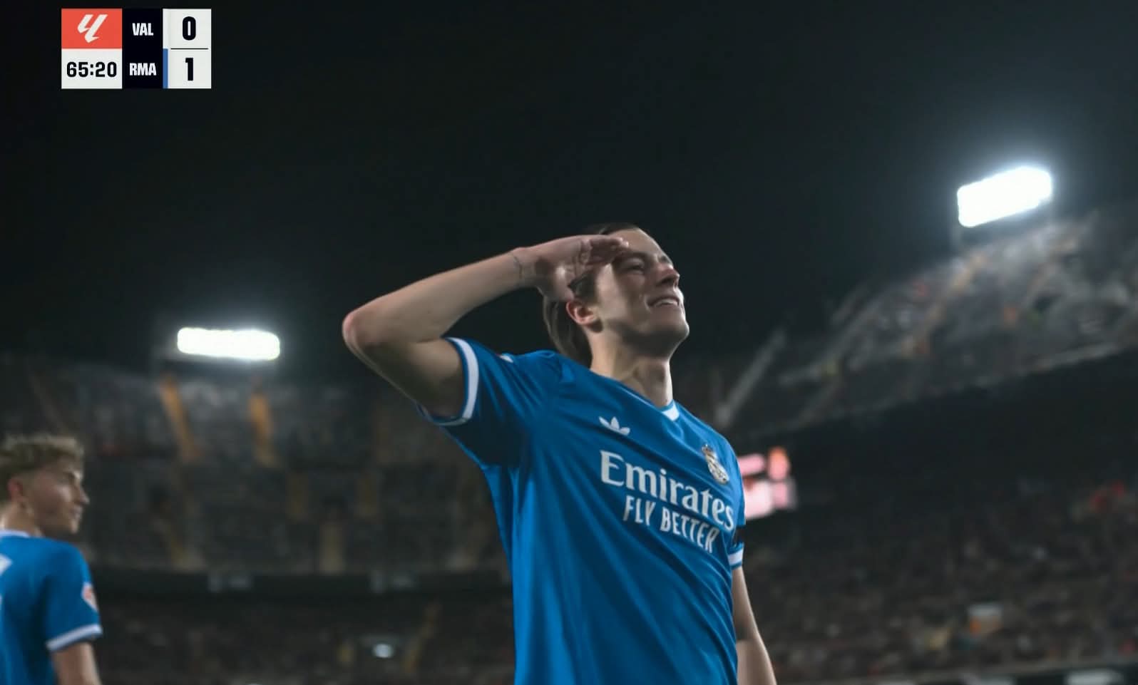 مرت الدقائق دون فرص حقيقية، وتبادل الفريقان السيطرة دون تهديد صريح للمرميين، حتى جاءت الدقيقة 65 التي حملت التحول الأبرز في اللقاء. كاريراس خطف الأضواء بعدما استلم الكرة خارج منطقة الجزاء، وتقدم خطوة واحدة قبل أن يطلق تسديدة قوية ومتقنة بقدمه اليسرى، استقرت في الزاوية البعيدة لمرمى فالنسيا، معلنة عن الهدف الأول لريال مدريد وسط صمت مفاجئ في المدرجات.
